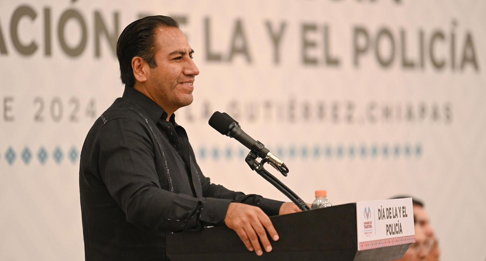 El gobernador Eduardo Ramírez Aguilar encabezó la celebración del Día de la y el Policía, acompañado del comandante de la 31 Zona Militar, el general Román Villalvazo Barrios; del secretario de Seguridad del Pueblo, Óscar Alberto Aparicio Avendaño; y el fiscal general del Estado, Jorge Luis Llaven Abarca, donde anunció que, con el acompañamiento y respaldo de las Fuerzas Armadas, las corporaciones de seguridad del estado y federales ingresarán a los municipios de las regiones Frontera, Sierra y Frailesca para recuperar la paz y aplicar la ley en contra de quienes ataquen las vías de comunicación y quieran someter al pueblo.