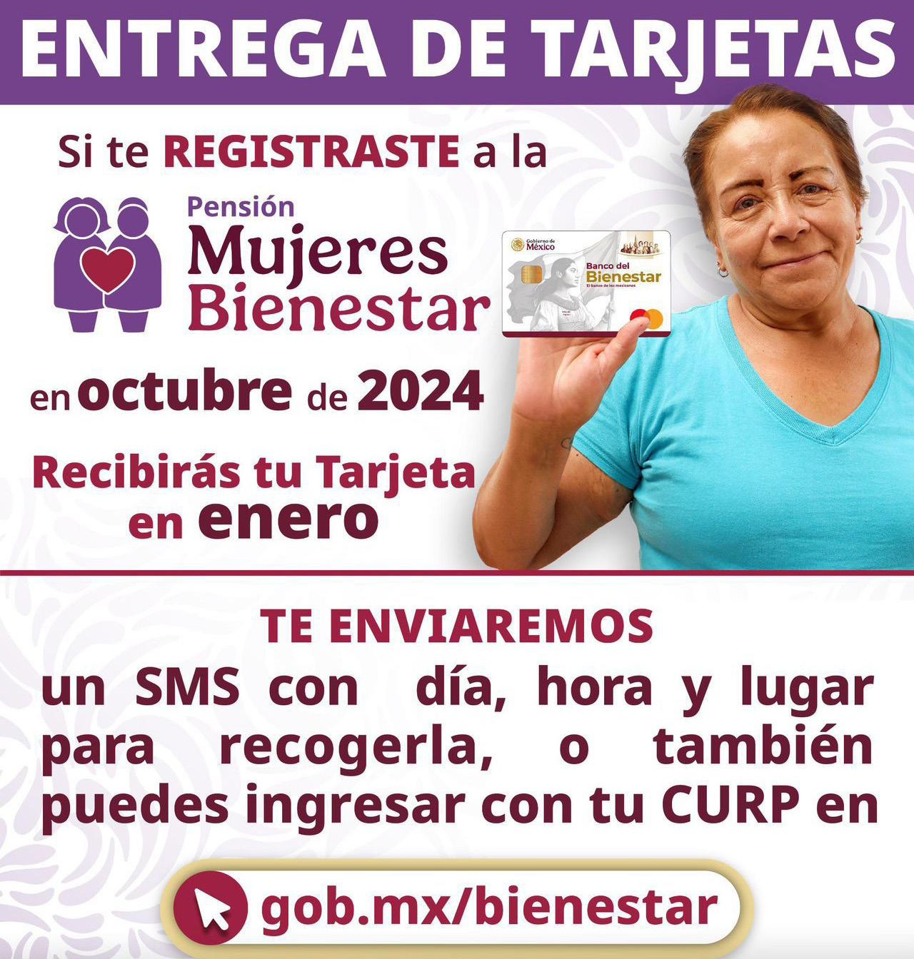 jeres que se registraron un mensaje de texto SMS al número de teléfono que dejaron en el registro o pueden consultar la página gob.mx/bienestar. Una vez que ingresen, deberán hacer click al ícono de la Pensión Mujeres Bienestar, ingresar la CURP y en seguida aparecerá la información para recogerla.