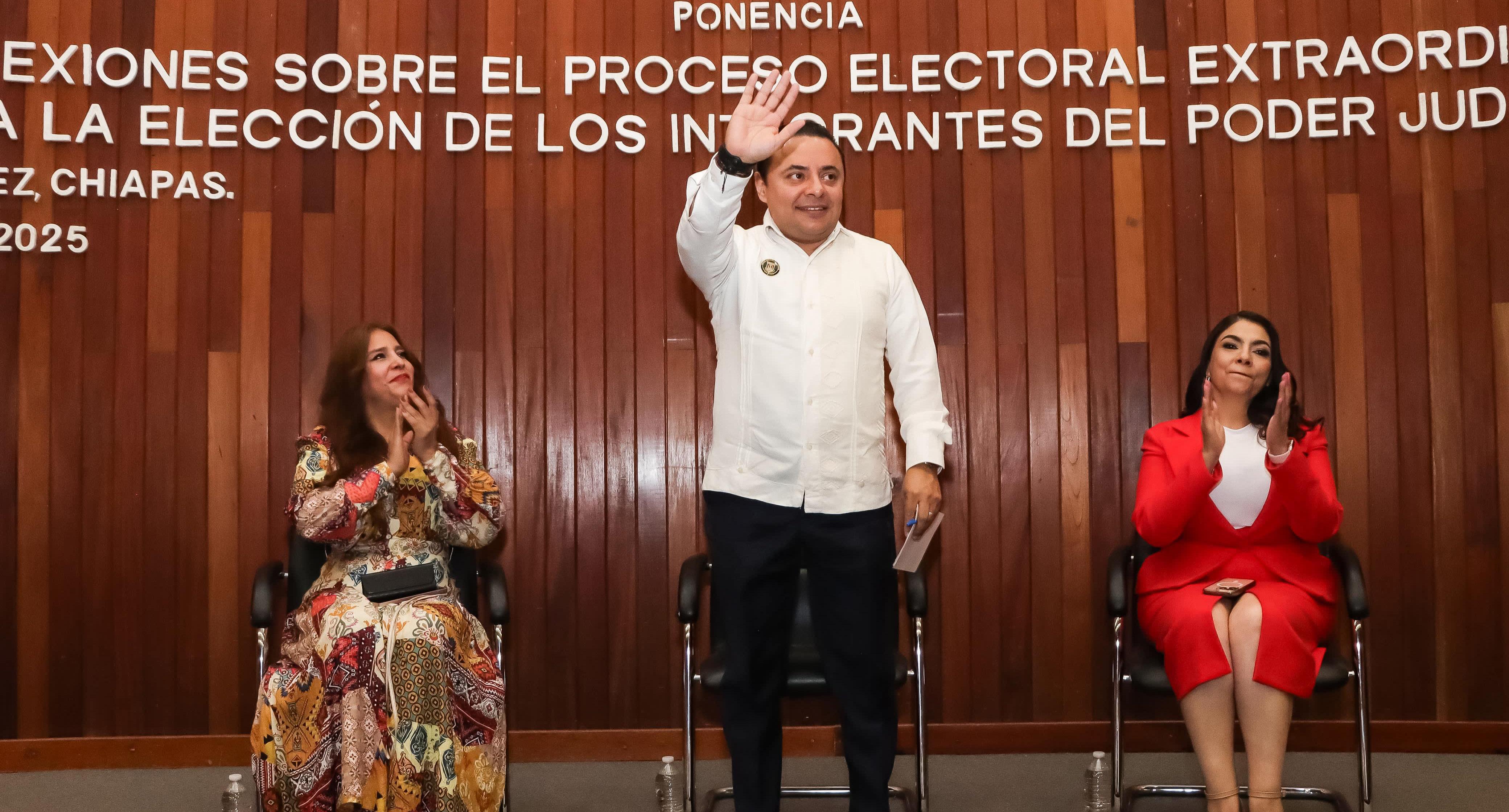 Desde el auditorio Don Enrique Robles Domínguez del palacio de justicia, en la capital chiapaneca, Moreno Guillén subrayó la importancia de reflexionar sobre los procesos electorales extraordinarios y su impacto en el sistema judicial, traba-