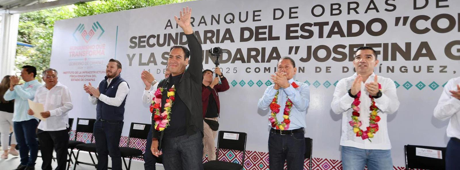 En Comitán de Domínguez, el gobernador Eduardo Ramírez Aguilar dio inicio al eje de Infraestructura Educativa en Chiapas, con el arranque de obras en las Escuelas Secundarias del Estado "Comitán" y "Josefina García", que comparten instalaciones, así como en la Escuela Preparatoria “Comitán”. Estas acciones tienen el objetivo de garantizar espacios dignos y de calidad a la comunidad escolar.