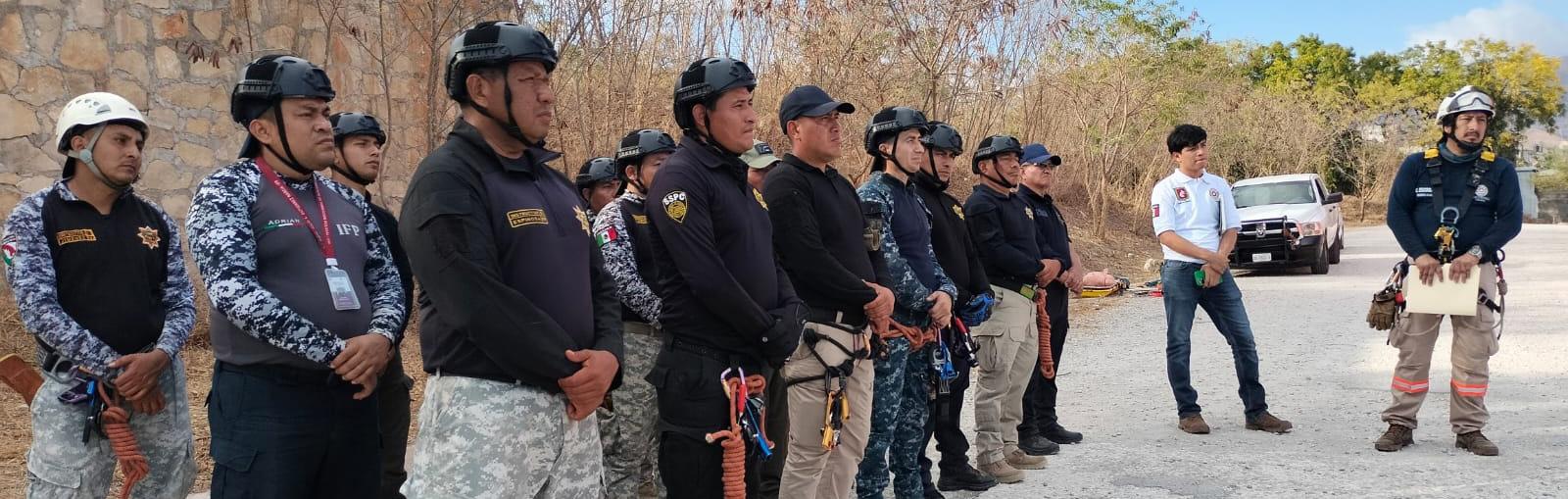 Instructores del Instituto de Formación Policial (IFP), pertenecientes a la Secretaría de Seguridad del Pueblo (SSP), que encabeza el doctor y piloto aviador, Óscar Alberto Aparicio Avendaño, recibieron taller denominado “Rescate con cuerdas y Rescate vertical”.