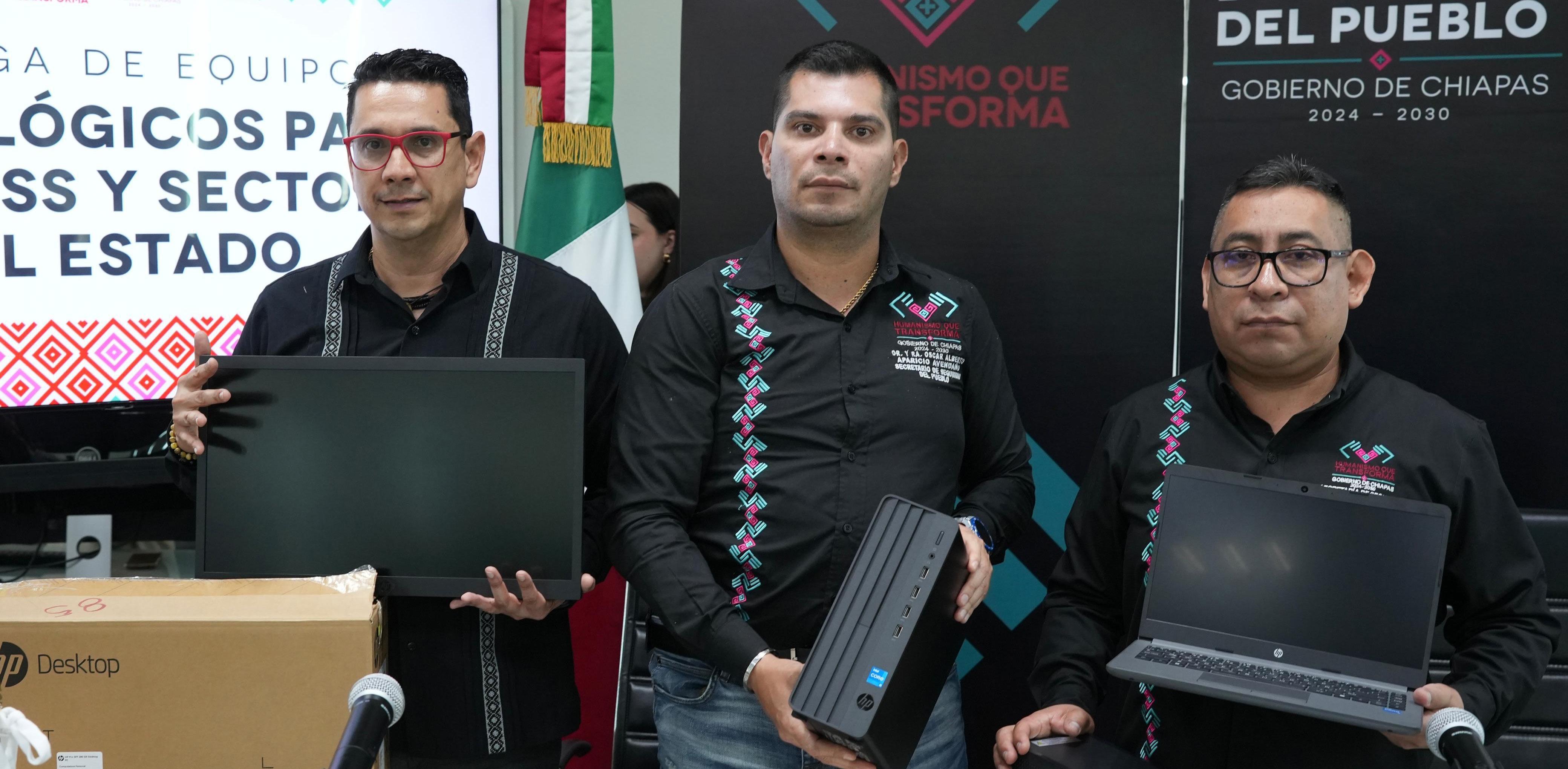 El secretario de Seguridad del Pueblo (SSP) doctor y piloto aviador, Óscar Alberto Aparicio Avendaño hizo entrega de Equipos Tecnológicos para los Centros de Reinserción Social para Sentenciados (CERSS) y sectores del estado para dotarlos de tecnología de alto nivel para desarrollar el trabajo con mayor eficiencia, rapidez y humanismo en Chiapas.