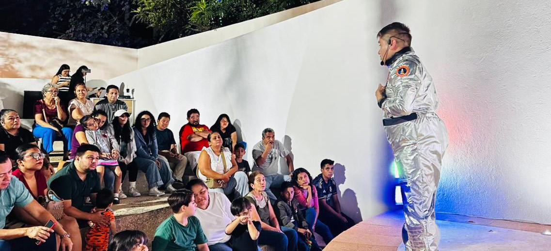 Tuxtla Gutiérrez, Chiapas.- Más de 200 personas disfrutaron de una noche de ciencia y arte en el Planetario Tuxtla con el evento teatral Valija de Microcuentos Espaciales para Explorar el Universo.