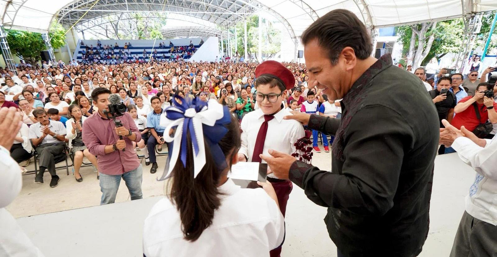 Posteriormente, el gobernador Eduardo Ramírez visitó el Centro de Educación Básica del Estado de Chiapas (Cebech) “Dr. Belisario Domínguez Palencia”, donde encabezó la entrega de becas estatales y reafirmó