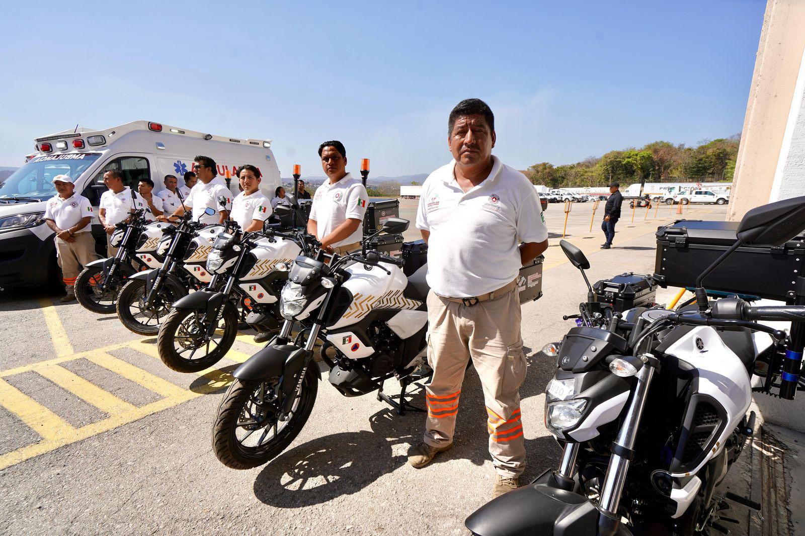 ambulancias de segundo y tercer nivel de atención, así como 10 motoambulancias de primer contacto, mismas que están equipadas con botiquines de soporte vital básico y desfibriladores externos automáticos, lo que permitirá brindar una respuesta rápida y efectiva en situaciones de emergencia.