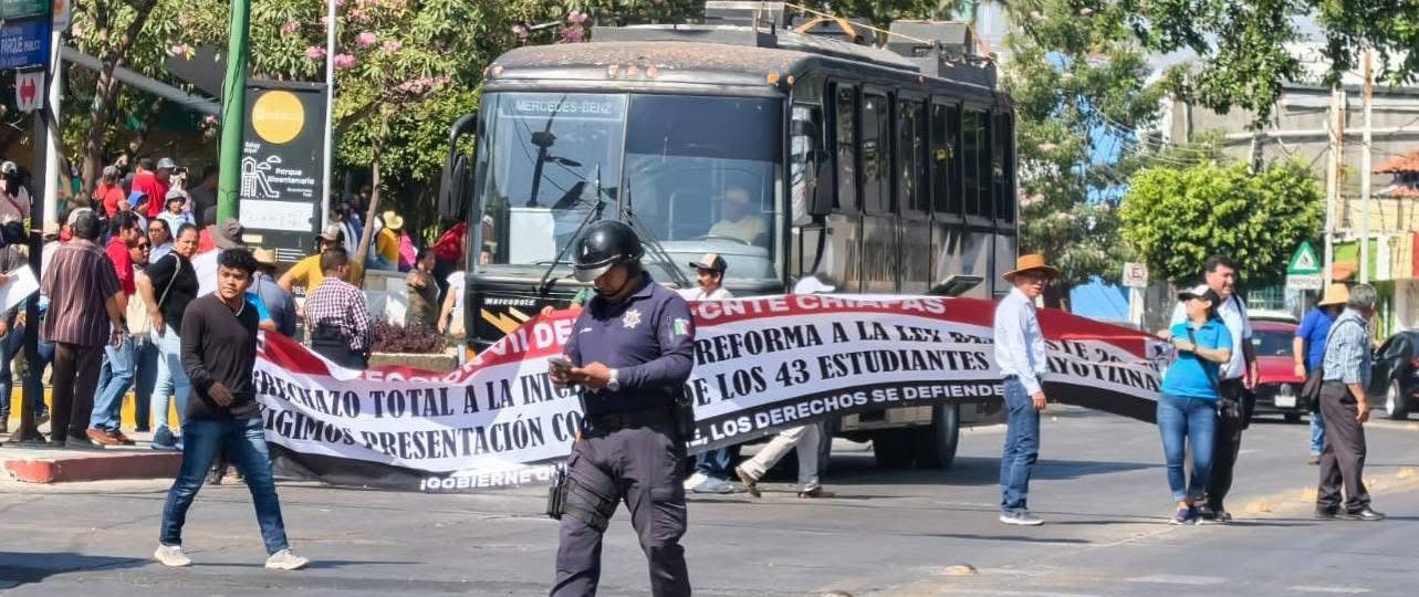 Maestros, egresados y organizaciones sociales realizaron movilizaciones en Tuxtla Gutiérrez y San Cristóbal de Las Casas para protestar contra la iniciativa de reforma a la Ley del ISSSTE y exigir justicia para los 43 normalistas desaparecidos de Ayotzinapa.