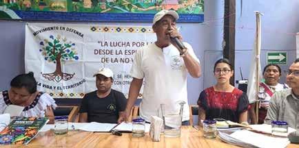 En conferencia de prensa, integrantes del Movimiento en Defensa de la Vida y el Territorio (MODEVITE) y del gobierno comunitario
