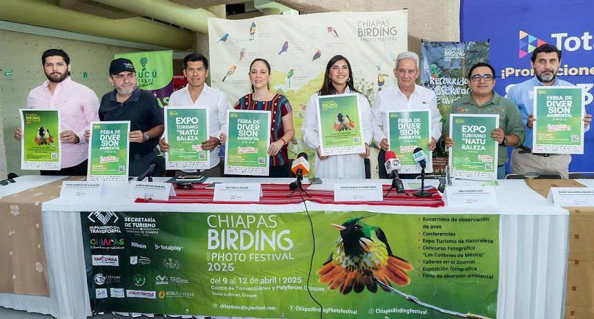 La Secretaría de Turismo del Estado de Chiapas (Sectur), encabezada por María Eugenia Culebro Pérez, presentó oficialmente la sexta edición del Chiapas Birding and Photo Festival 2025. En conferencia de prensa, se dieron a conocer los detalles del programa, destacando el aviturismo como una oportunidad clave para la conservación ambiental y el desarrollo comunitario en Chiapas.