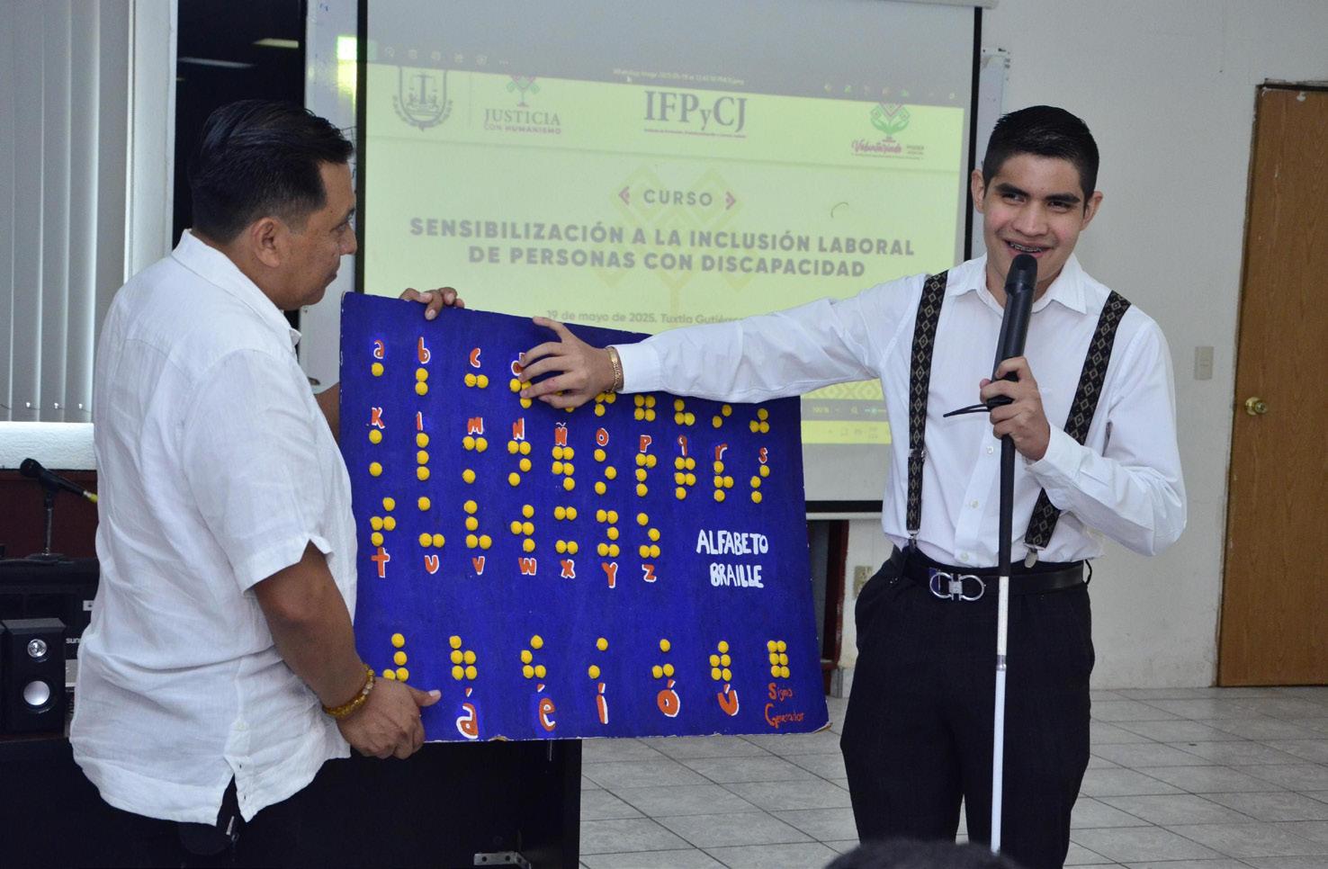 El Poder Judicial del Estado de Chiapas, a través del Instituto de Formación, Profesionalización y Carrera Judicial (IFPyCJ), realizó el curso Sensibilización a la inclusión laboral de personas con discapacidad, con el objetivo de que las y los servidores pudieran experimentar y comprender el entorno que viven las personas con discapacidad.