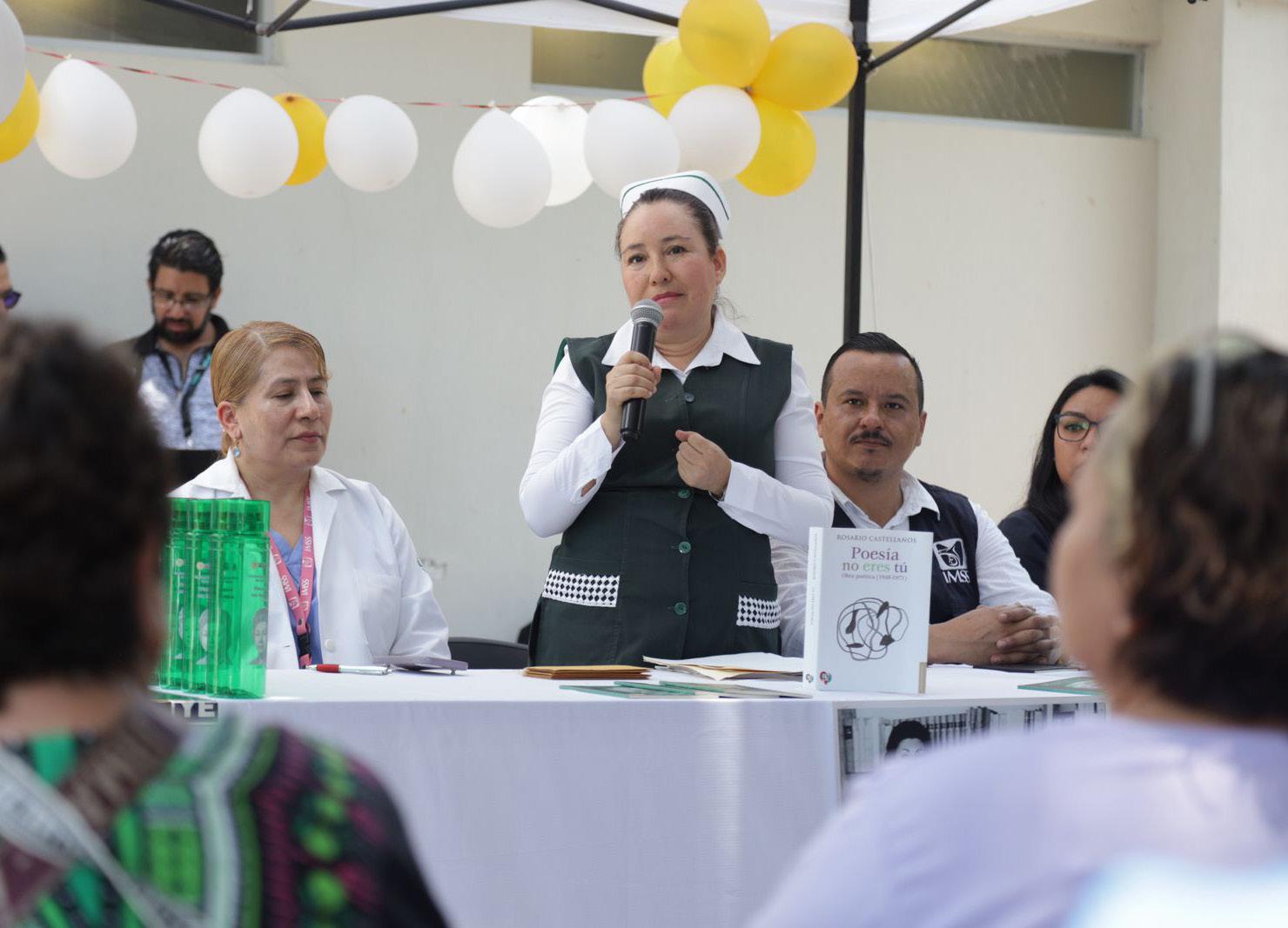 La enfermera del HGZ No. 2 , licenciada, Maricruz Moreno Gordillo, compartió como los poemas y notas periodísticas de Rosario Castellanos, influyeron en su vida para lograr ser la primera mujer profe-