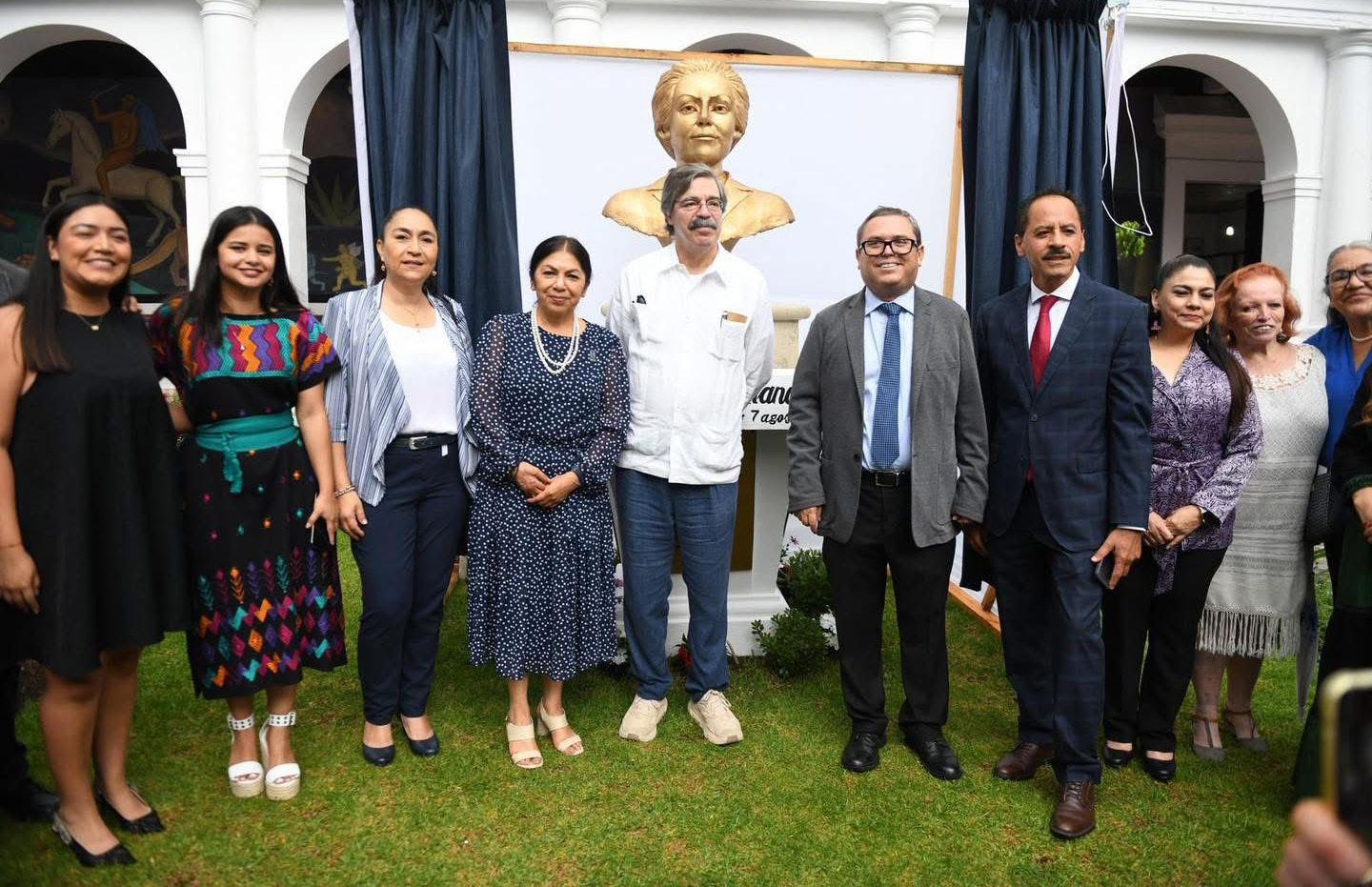 social y cultural de la connotada comiteca, el rector Oswaldo Chacón Rojas, junto al hijo de la homenajeada, Gabriel Guerra Castellanos y el director de la Facultad, Miguel Ángel de los Santos Cruz, develó este busto realizado en bronce.