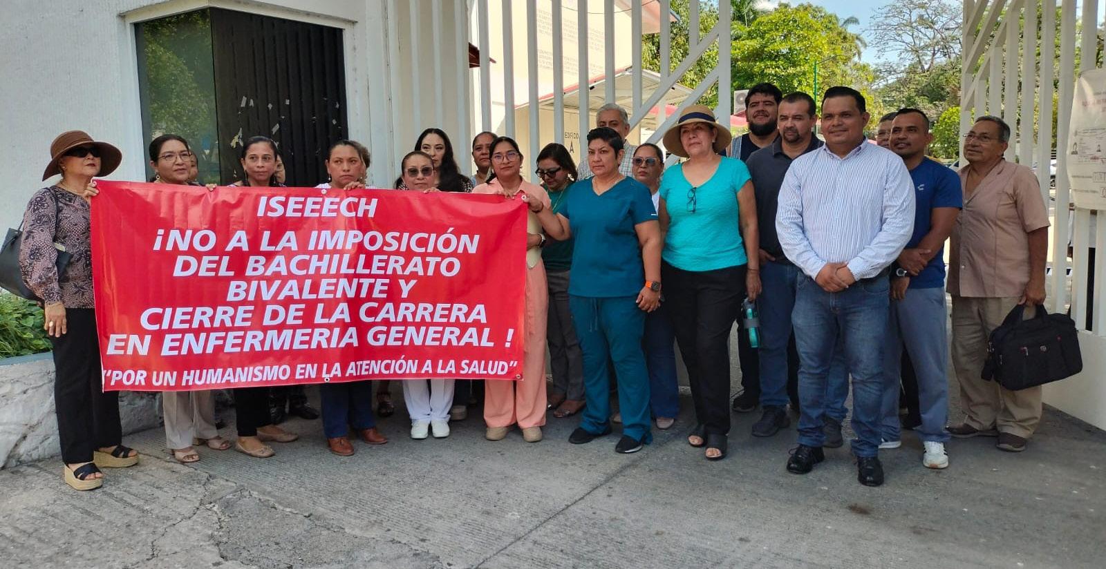 Docentes del Instituto Superior de Enfermería del Estado de Chiapas, ISEEECH, dan a conocer su postura ante la “imposición” de una Escuela Preparatoria Bivalente y cierre de la matrícula en Enfermería General, en donde en la actualidad cursan dos generaciones y otras más están por egresar, violentando el decreto de su fundación.