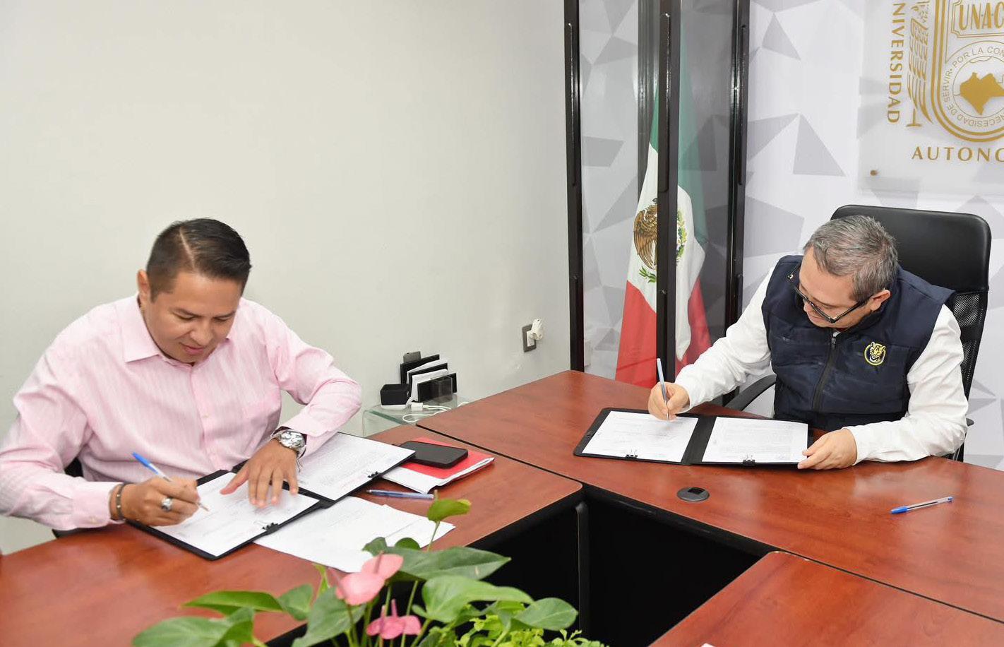 Tuxtla Gutiérrez, Chiapas. - Con el objetivo de llevar a cabo acciones conjuntas tendientes al mejor aprovechamiento de sus recursos humanos y técnicos, la Universidad Autónoma de Chiapas firmó un Convenio General de Colaboración con el Instituto de Capacitación y Vinculación Tecnológica del Estado de Chiapas (ICATECH).