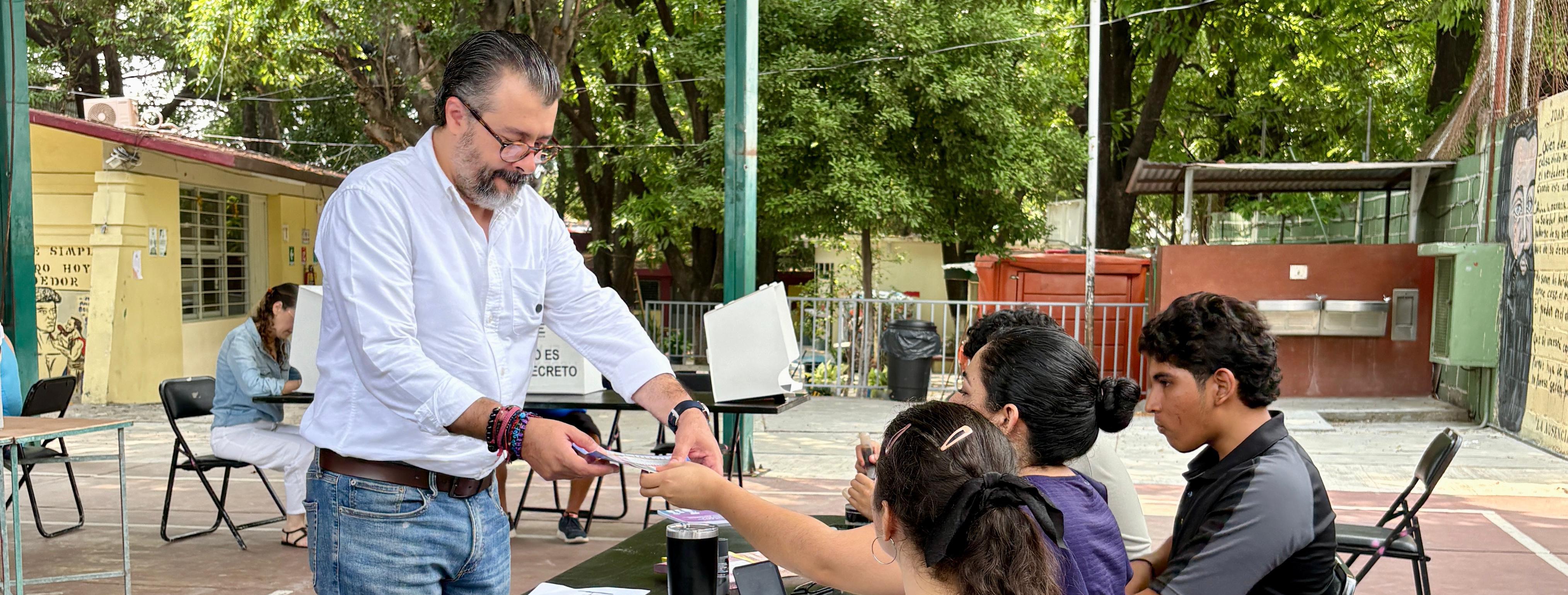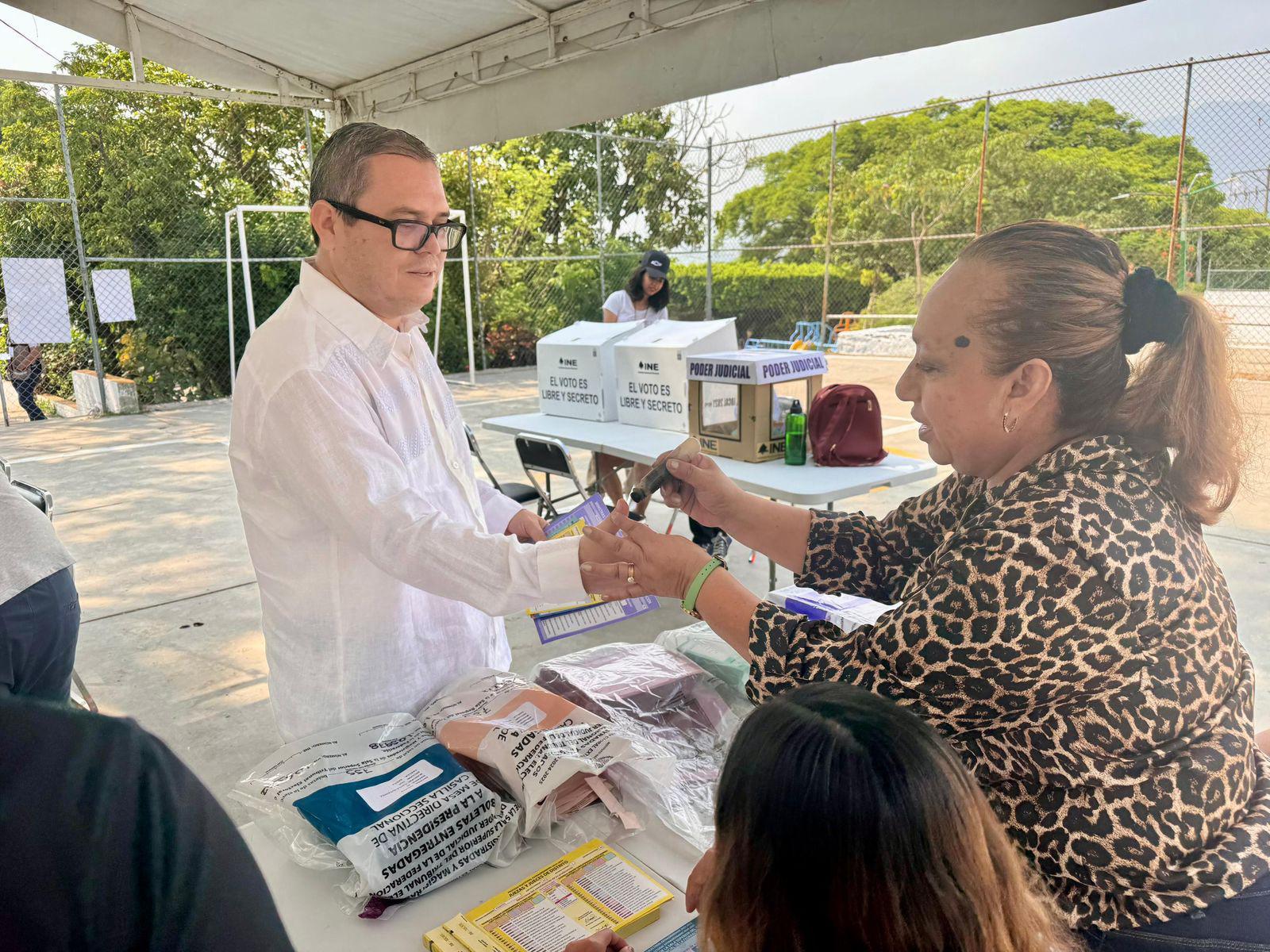 Tras ejercer su derecho al sufragio, Bátiz reconoció la organización y atención de las y los funcionarios de casilla, a quienes agradeció su compromiso con la legalidad y el proceso democrático.