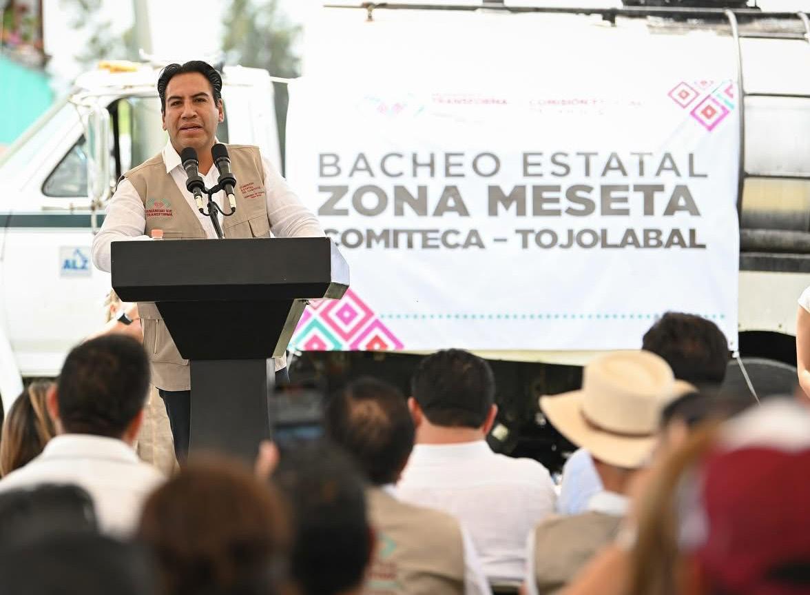 En el municipio de Comitán de Domínguez, el gobernador Eduardo Ramírez Aguilar dio inicio al Programa de Bacheo Estatal “Carreteras Vivas” en la región Meseta Comiteca Tojolabal. En ese marco, explicó que se llevará a cabo la rehabilitación de caminos en diversas zonas de la entidad y que ha instruido agilizar los trabajos para minimizar las afectaciones a la población. Acompañado por la señora Sofía Espinoza Abarca, el mandatario precisó que en esta región se mejorarán más de 127 kilómetros de carreteras, mientras que en la región De Los Llanos serán 152 kilómetros; en la Altos Tsotsil Tseltal, 425; en la Sierra Mariscal, 22; y en la Tulijá Tseltal Chol, 114 kilómetros. En cuanto a las obras que se realizarán en Comitán, Ramírez Aguilar anunció que este año se licitará la primera etapa del proyecto de agua potable, con una inversión de 300 millones de pesos, la cual será ejecutada por empresas