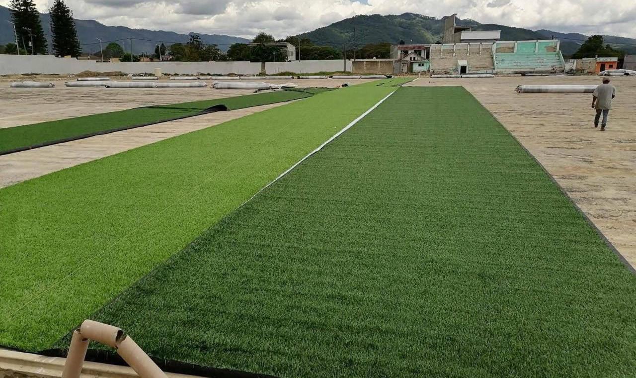 El pasto sintético que será colocado en el campo ya fue recibido por el Presidente Municipal Lic. Gaspar Sántiz Jiménez , quien también supervisa personalmente