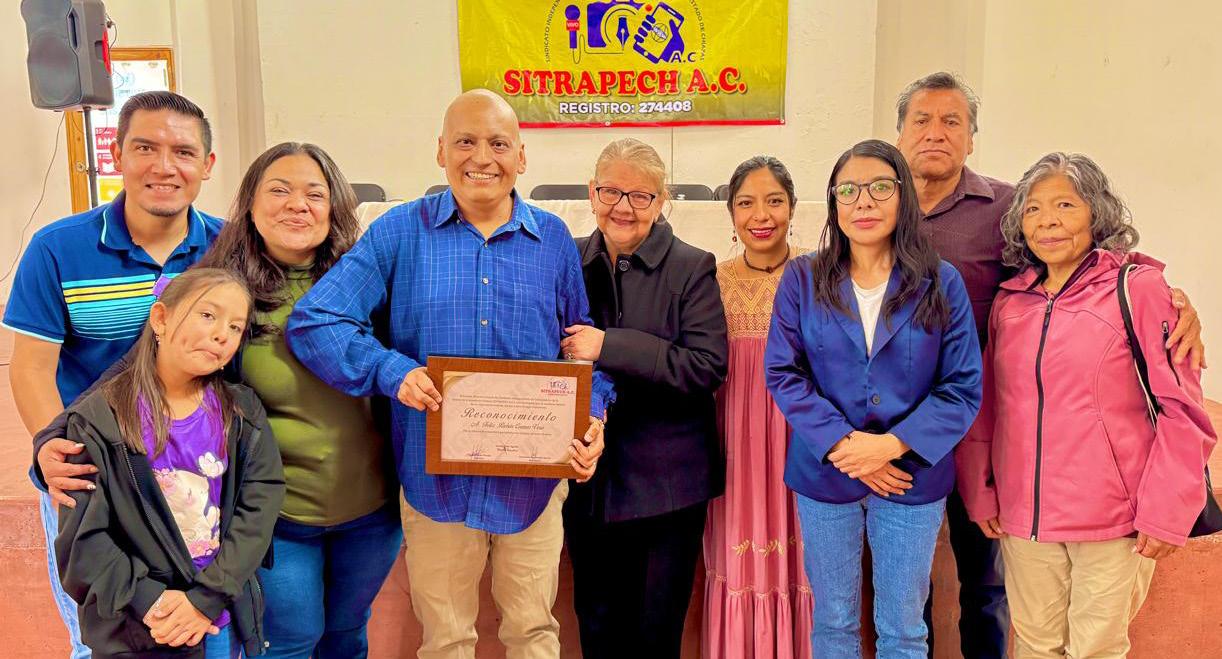 En un ambiente de camaradería y rodeado de sus familiares y colegas de ambas ciudades, el pleno del Comité Directivo del SITRAPECH A.C, encabezado por Daniel Alberto Pérez Aguilar, hizo entrega del reconocimiento al destacado trabajo periodístico que éste ha realizado de manera incansable y comprometida con la sociedad.