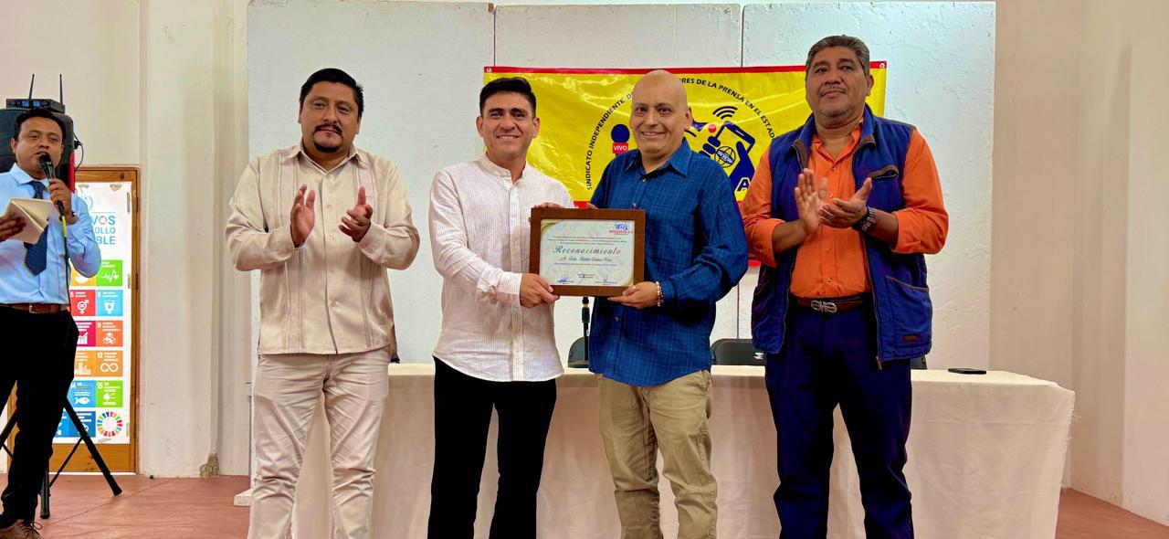 San Cristóbal de Las Casas, 22 de junio._ El Sindicato Independiente de Trabajadores de la Prensa del Estado de Chiapas (SITRAPECH) Asociación Civil, reconoció la labor periodística de Félix Camas Vera por sus 15 años en el quehacer periodístico, tanto en esta ciudad colonial como en la capital chiapaneca.