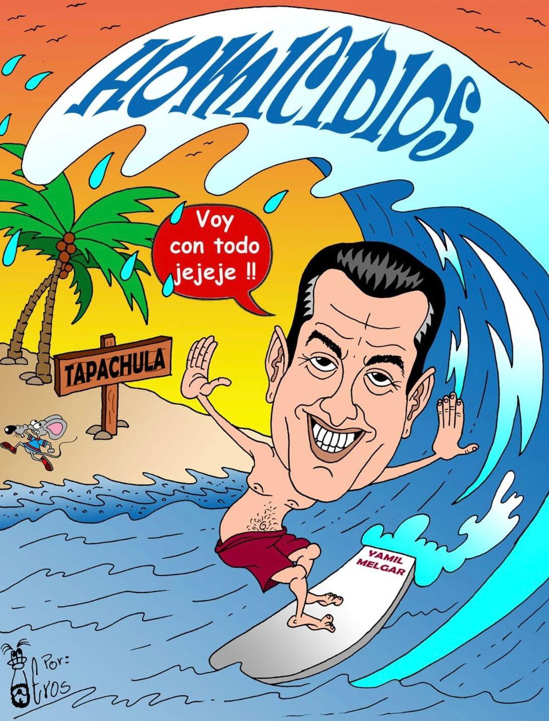 de escudos con castillos, leones rampantes y coronas. ¡A barrer con todo lo español! Que el nuevo escudo chiapaneco represente por fin a la modernidad descolonizada: propongo un fondo color cacao orgánico, un jaguar negro devorando una nauyaca sobre una milpa de maíz —para simbolizar lo que ha quedado de nuestros bosques y selvas. Al centro, una hamaca colgando entre una palmera de cocos y una penca de plátano y de a un costado un cajero del bienestar. ¿Que seguimos hablando español? De ninguna manera. Urge decretar la sustitución inmediata del idioma impuesto por la Corona. Desde ahora, todo trámite debe hacerse en tzotzil o en tzeltal —y que nadie se atreva a pedir traductor, porque eso también sería colonialismo lingüístico. Los documentos oficiales del Congreso se escribirán con