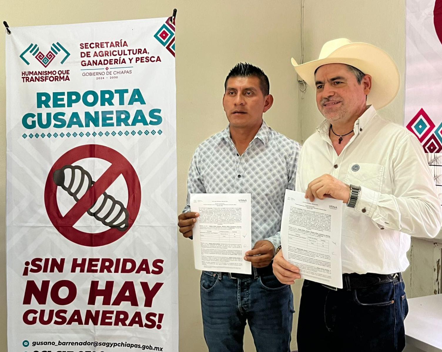 Altamirano, se suma a las acciones coordinadas por la Secretaría de Agricultura, Ganadería y Pesca del Estado para combatir la proliferación del gusano barrenador, una plaga que está afectando gravemente al ganado de nuestra región. En seguimiento al plan emergente instruido por el gobernador Eduardo Ramírez , el presidente municipal Gaspar Sántiz Jiménez sostuvo una reunión de trabajo con el subsecretario de Ganadería, el Ing. Héctor Albores Cruz, quien hizo entrega de kits con productos y herramientas para la atención y prevención de esta enfermedad zoonótica. El gusano barrenador es una larva que invade heridas abiertas en el ganado, provocando infecciones