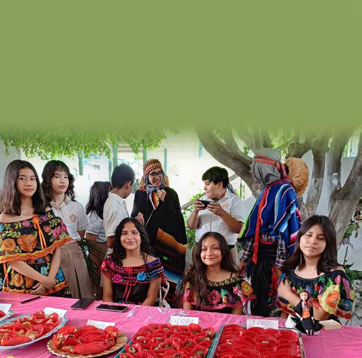 distribuidos que albergaban las ricas y diversas viandas de la mejor cocina regional, y que eran ofrecidas por los propios alumnos de la escuela.