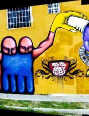 Estos grafitis llevan los nombres de Noriega, Hugo Huitzi, Sekta, Dakpak, Alen, DSC, entre otros. Aquí ya existe un estilo gráfico definido, un trabajo digno de ser expuesto, al grado de que algunos comercios los están contratando para murales en sus negocios. Al respecto tengo una anécdota que nos muestra el poder subversivo del grafiti. Un día me encontré con el pintor Enrique Díaz y me platicó que el Estado había decidido que ciertas bardas de la ciudad, en total seis, iban a ser pintadas por él con el fin de que esos espacios fueran decorados. La idea me pareció buena y Enrique se puso a trabajar duro y pintó dos bardas del Parque Morelos, otra en la Tercera Norte a la altura de 5a. Oriente, otra en el Libramiento Norte y más que ya no recuerdo. Cuando quedaron terminados los murales urbanos se veían mejor que aquellas bardas feas, naturalmente, pero la sorpresa fue que una semana más tarde ya les habían quebrado su mandarina en gajos: a unos ya les habían pegado publicidad encima, otros con aerosol les habían pintado firmas y rallas y a otros de plano les habían dado picazos. Me detuve un momento y empecé a reír y pensé: ¡la venganza