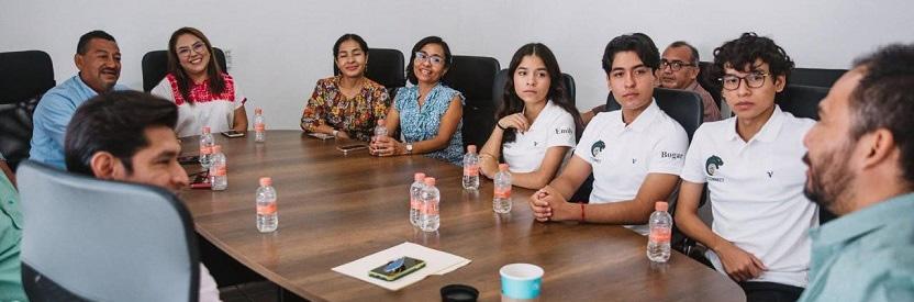 Tuxtla Gutiérrez, Chiapas; 26 de junio 2025.- El director general del Colegio de Bachilleres de Chiapas (Cobach), Miguel Prado de los Santos, sostuvo este jueves una reunión con las y los estudiantes y asesores del Plantel 13 Tuxtla Oriente creadores del proyecto NET CONNECT, iniciativa ganadora de la convocatoria internacional “Jóvenes en Acción México–Estados Unidos 2025”.