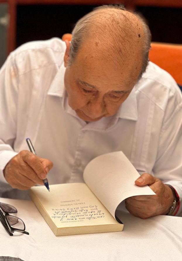 Tuxtla Gutiérrez, Chiapas. A los 80 años, el notario Gilberto Bátiz López decidió celebrar la vida con lo que siempre lo ha acompañado: la literatura, la memoria, la poesía, las causas. Su deseo de cumpleaños se cumplió con la presentación de su segunda novela Con el viento al hombro, un libro que narra la vida revolucionaria de Ernesto “Che” Guevara desde un ángulo poco convencional: el de un abuelo que le cuenta a su nieta que fue amigo del Che y cómo lo acompañó, no solo en el viaje físico, sino también en la fuerza de sus ideales.