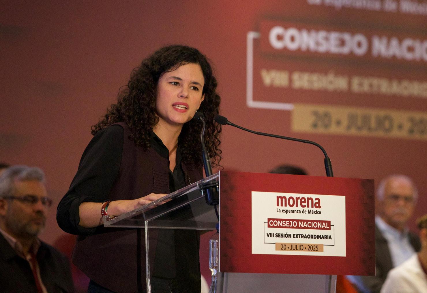 Durante su intervención, la presidenta del partido, Luisa María Alcalde, afirmó que Morena no será refugio de políticos acusados de corrupción ni de quienes contradigan