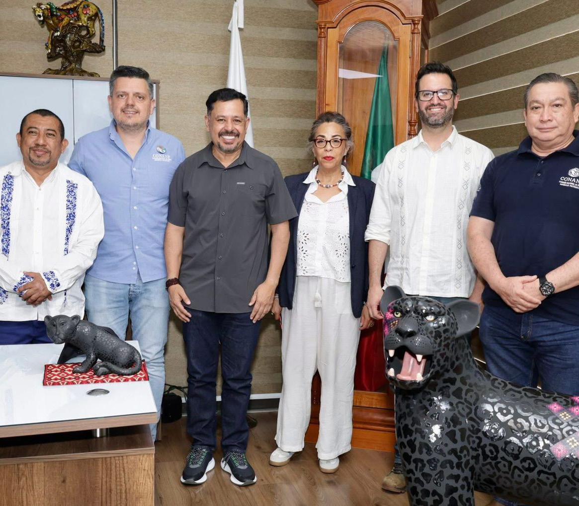Freddy Escobar Sánchez, sostuvieron una reunión con el director general del Instituto Nacional del Suelo Sustentable, José Alfonso Iracheta Carroll y el director regional de Frontera, Istmo y Pacífico Sur de la Comisión Nacional de Áreas Naturales Protegidas, Pavel Palacios Chávez.