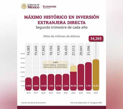 * Los flujos de Inversión Extranjera Directa crecieron 10.2 por ciento respecto al mismo periodo de 2024, pese a un panorama global de contracción de capitales.