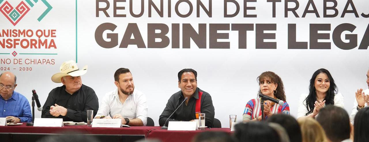 Al encabezar la reunión con el Gabinete Legal y Ampliado, el gobernador Eduardo Ramírez Aguilar reconoció los avances y logros en los diferentes ámbitos de la administración pública estatal, e invitó a las servidoras y servidores del pueblo a fortalecer el trabajo en favor del bienestar y el desarrollo social y económico de Chiapas.
