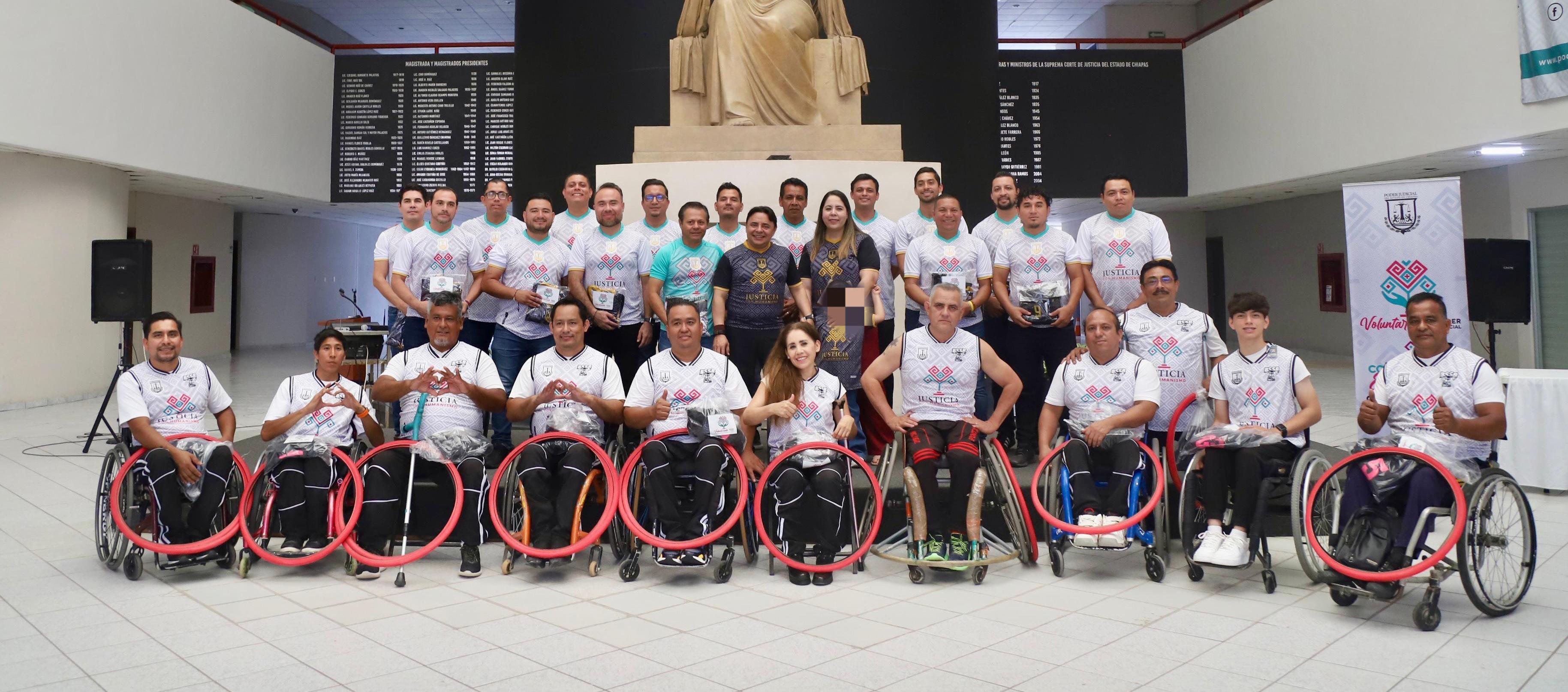 trado presidente Moreno Guillén y la presidenta Rabban Castell se tomaron fotografías con los equipos beneficiados, refrendando el compromiso del Voluntariado y del Poder Judicial de Chiapas de seguir impulsando acciones que promuevan la inclusión, la sana convivencia desde el corazón de la justicia.