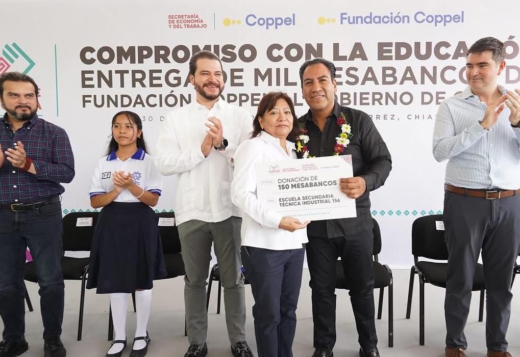 Con el propósito de fortalecer la infraestructura escolar y garantizar a niñas, niños y adolescentes espacios dignos para su aprendizaje, el Gobierno del Estado de Chiapas, en coordinación con Fundación Coppel, entregó mil mesabancos a 10 escuelas públicas de nivel básico en Tuxtla Gutiérrez.