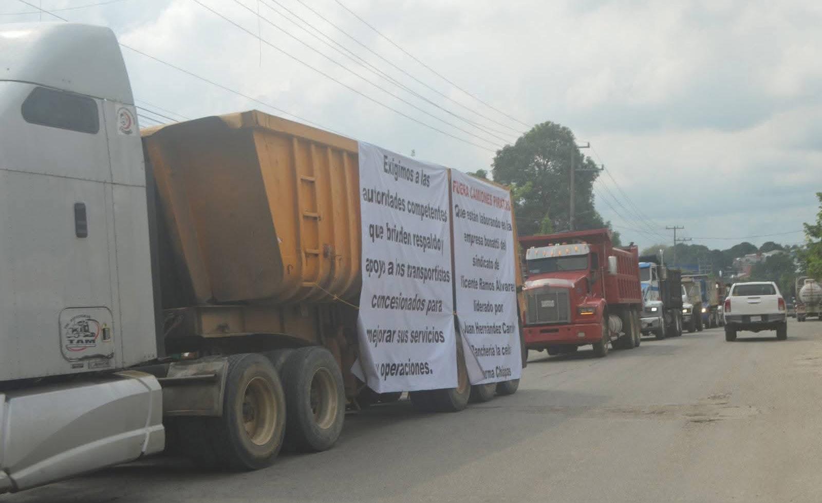 Transportistas concesionados de la zona norte del estado realizaron una movilización en el municipio de Reforma para exigir acciones inmediatas contra el transporte irregular que, señalaron, afecta a los gremios de carga, volteos y taxis en la región. Los manifestantes recorrieron las principales calles de la ciudad y denunciaron la falta de operativos de la Secretaría de Movilidad y Transporte, lo que ha permitido el crecimiento de unidades piratas en municipios como Pichucalco, Juárez, Ostuacán y Reforma. De acuerdo con los transportistas, esta situación ha provocado pérdidas económicas, enfrentamientos y desplazamiento de trabajadores concesionados. Durante la protesta, acusaron a líderes sindicales y funcionarios de obstaculizar las acciones contra el transporte irregular. Entre los señalados se encuentra Juan Carrillo Hernández, líder del sindicato de obreros de la CTM, a quien respon-