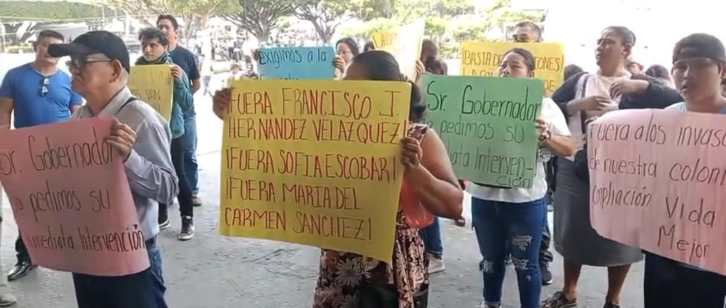 Durante una conferencia de prensa, los colonos señalaron a un grupo encabezado por Francisco Javier Hernández Velázquez, Sofía Escobar Rivera y María del Carmen Sánchez Hernández, a quienes acu-