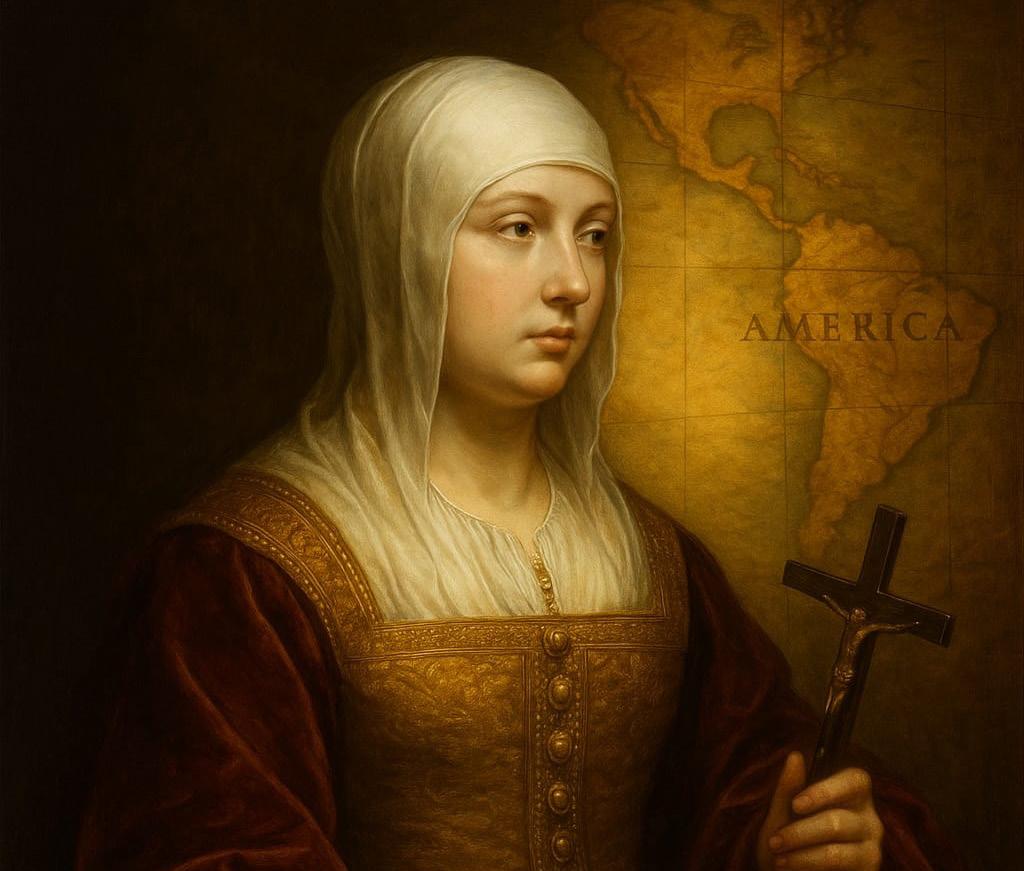 Cuando Cristóbal Colón regresó con la noticia del Nuevo Mundo, Isabel entendió la magnitud de lo que había ocurrido. Pero también el deber que se derivaba de ello. No lo vio como una empresa de rapiña ni como una cruzada militar, sino como una misión evangelizadora. Evangelizar, en su tiempo, no significaba imponer una religión, sino ofrecer una visión del mundo donde la fe y la dignidad humana fueran inseparables. Para Isabel, la conversión de los pueblos descubiertos debía ser pacífica, por medio de la enseñanza y la caridad. Nunca autorizó su esclavi-