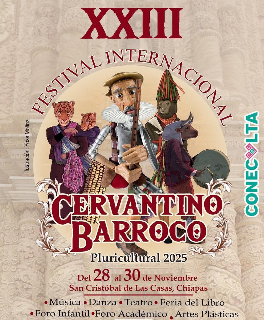 San Cristóbal de Las Casas, Chiapas.- En rueda de prensa, el Consejo Estatal para las Culturas y las Artes (Coneculta), en coordinación con el Ayuntamiento de San Cristóbal de Las Casas, dieron a conocer la cartelera de actividades del XXIII Festival Internacional Cervantino Barroco, el cual se llevará a cabo del viernes 28 al domingo 30 de noviembre en San Cristóbal de Las Casas, Chiapas.