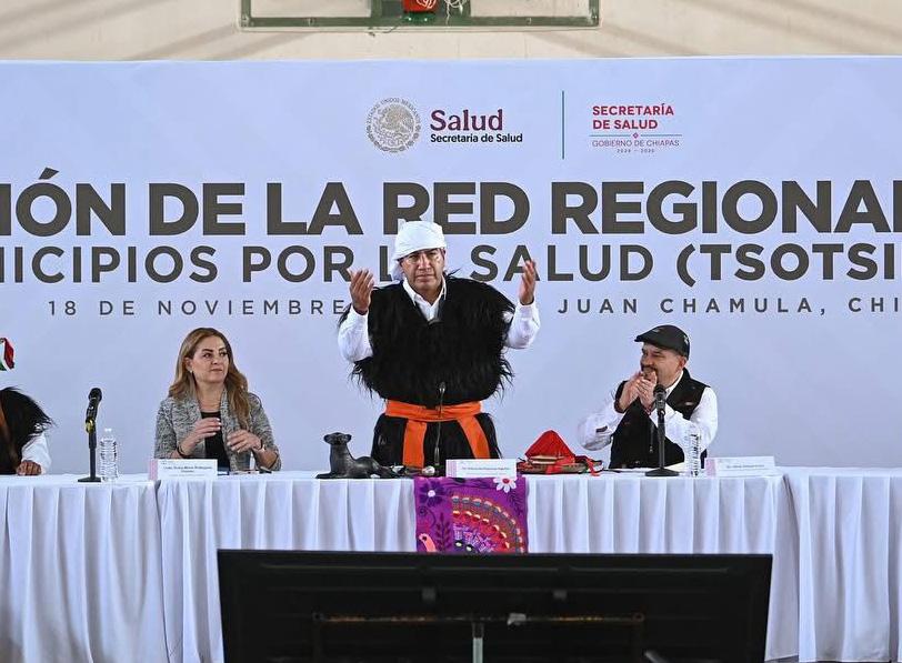 * En Chamula, encabezó la reunión de la Red Regional de Municipios por la Salud.