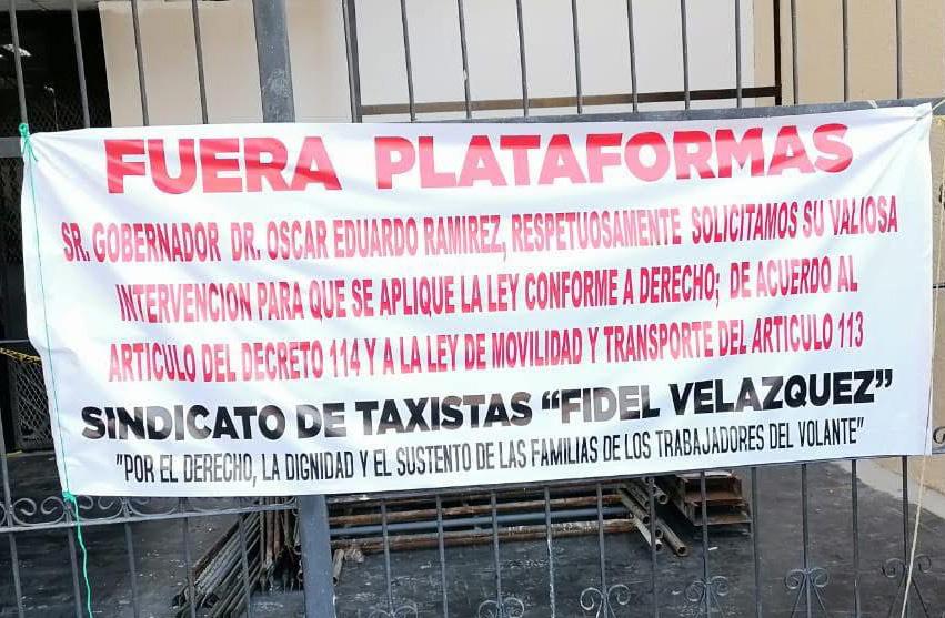 Integrantes del Sindicato de Taxistas Fidel Velázquez realizaron una manifestación frente al Edificio Sede del Poder Ejecutivo estatal para exigir la intervención de las autoridades ante el incremento de servicios de transporte prestados mediante aplicaciones digitales como Uber o DiDi, y explicaron que han reducido su actividad laboral y sus ingresos.