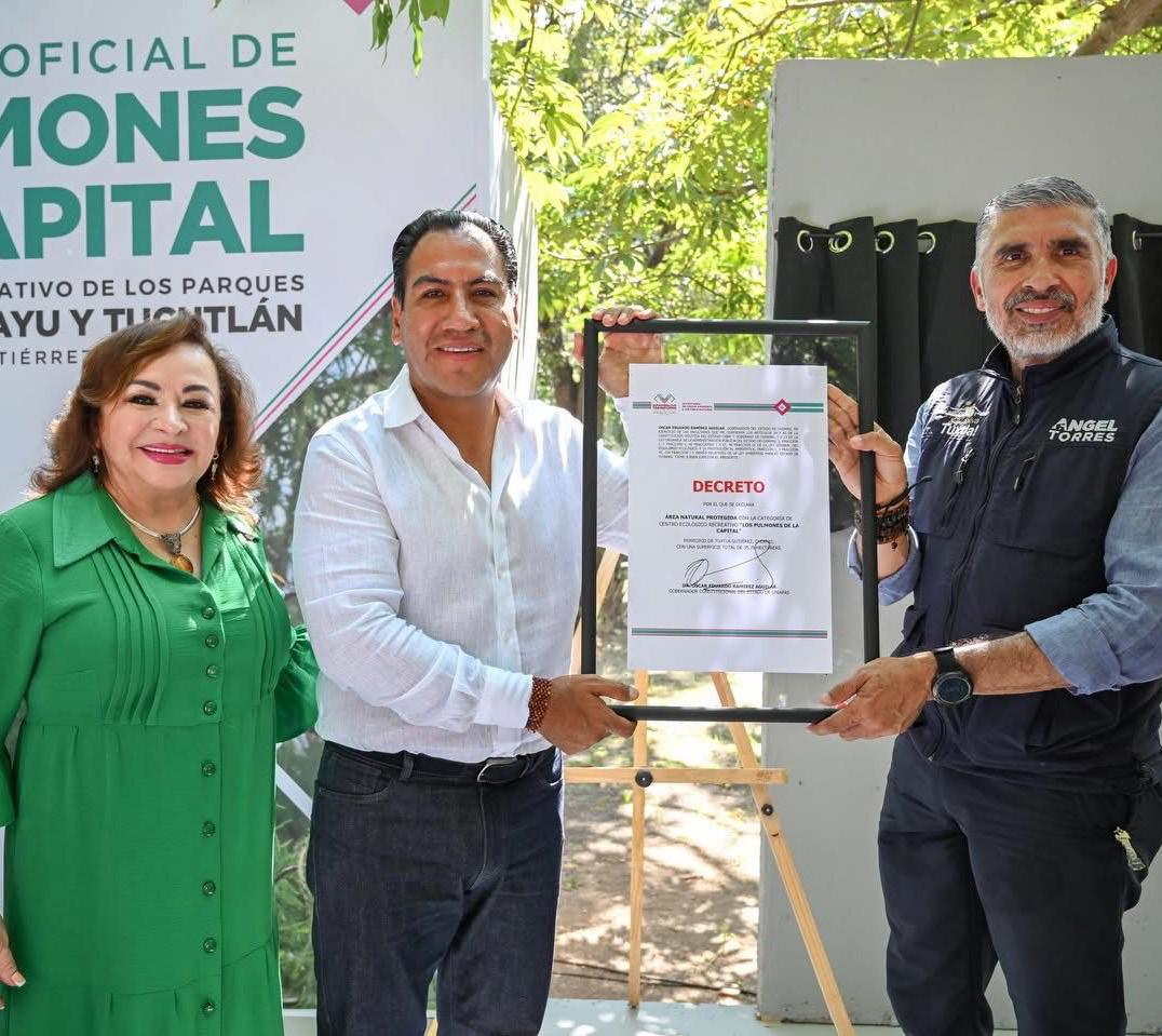 claratoria de los parques Caña Hueca, Joyyo Mayu y Tuchtlán como Centro Ecológico Recreativo “Los Pulmones de la Capital” demuestra el liderazgo del gobernador al situar al medio ambiente en el centro de las políticas públicas, y al legitimar este proceso mediante una consulta ciudadana. Señaló que esta decisión responde a la necesidad de contar con espacios más dignos para vivir, convivir y disfrutar en familia.