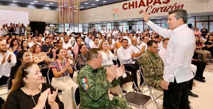 rantizar los derechos de las mujeres, evitar la discriminación y exclusión, para que haya paz y armonía y se otorgue el valor que le corresponde al trabajo de las personas indígenas. Acompañado de los líderes de los nueve partidos de la coalición, afirmó que trabajará de tiempo completo, sin distinción alguna entre los municipios, bajo el consenso de la población para el desarrollo de las obras, para ello, dijo, es necesario que trabajen en unidad, que haya paz y armonía entre las y los chiapanecos.