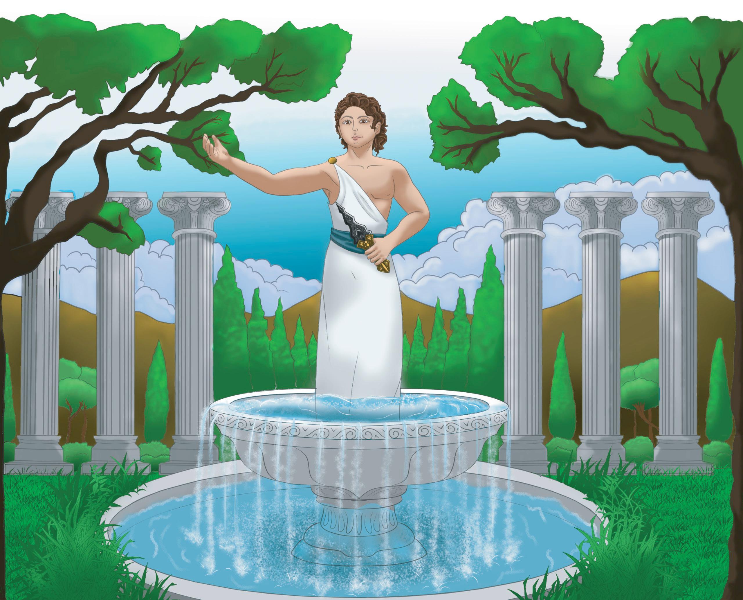 estatuas de mármol rosado. El agua que surgía de la fuente era cristalina y transparente, provocaba darle un sorbo y parecía que al tocar esa agua mis labios, quitaría toda la sed que pudiera tener en mi vida. Soñé con un paraíso sin preocupaciones, bellísimo, en el cual estaba yo solo. O eso creí hasta que lo vi. Una silueta masculina emerge de atrás de la fuente. Su cabello era ondulado y castaño, tenía una estatura promedio y su tez era un poco clara. Vestía solamente con una especie de ropaje blanco que lo cubría desde el pecho hasta los pies y hablaba con una voz muy melodiosa.