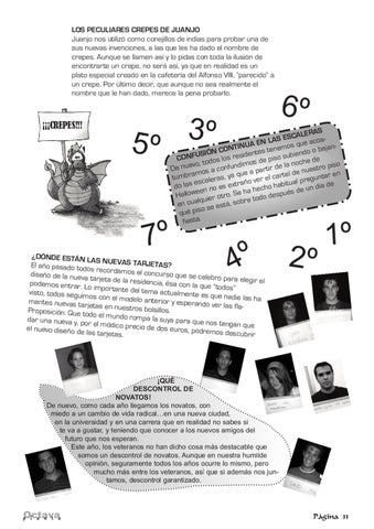 LOS PECULIARES CREPES DE JUANJO Juanjo nos utilizó como conejillos de indias para probar una de sus nuevas invenciones, a las que les ha dado el nombre de crepes. Aunque se llamen así y lo pidas con toda la ilusión de encontrarte un crepe, no será así, ya que en realidad es un plato especial creado en la cafetería del Alfonso VIII, “parecido” a un crepe. Por último decir, que aunque no sea realmente el nombre que le han dado, merece la pena probarlo.
