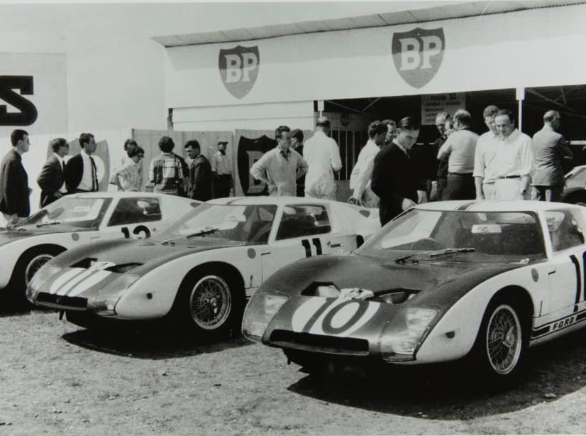 Foto tomada en junio de 1964 en vísperas de las 24 Horas de LeMans. La Ford Motor Company inscribió tres autos GT40 en la carrera de 1964 de las 24 Horas de Le Mans. El estadounidense Phil Hill y el neozelandés Bruce McLaren condujeron el auto núme -