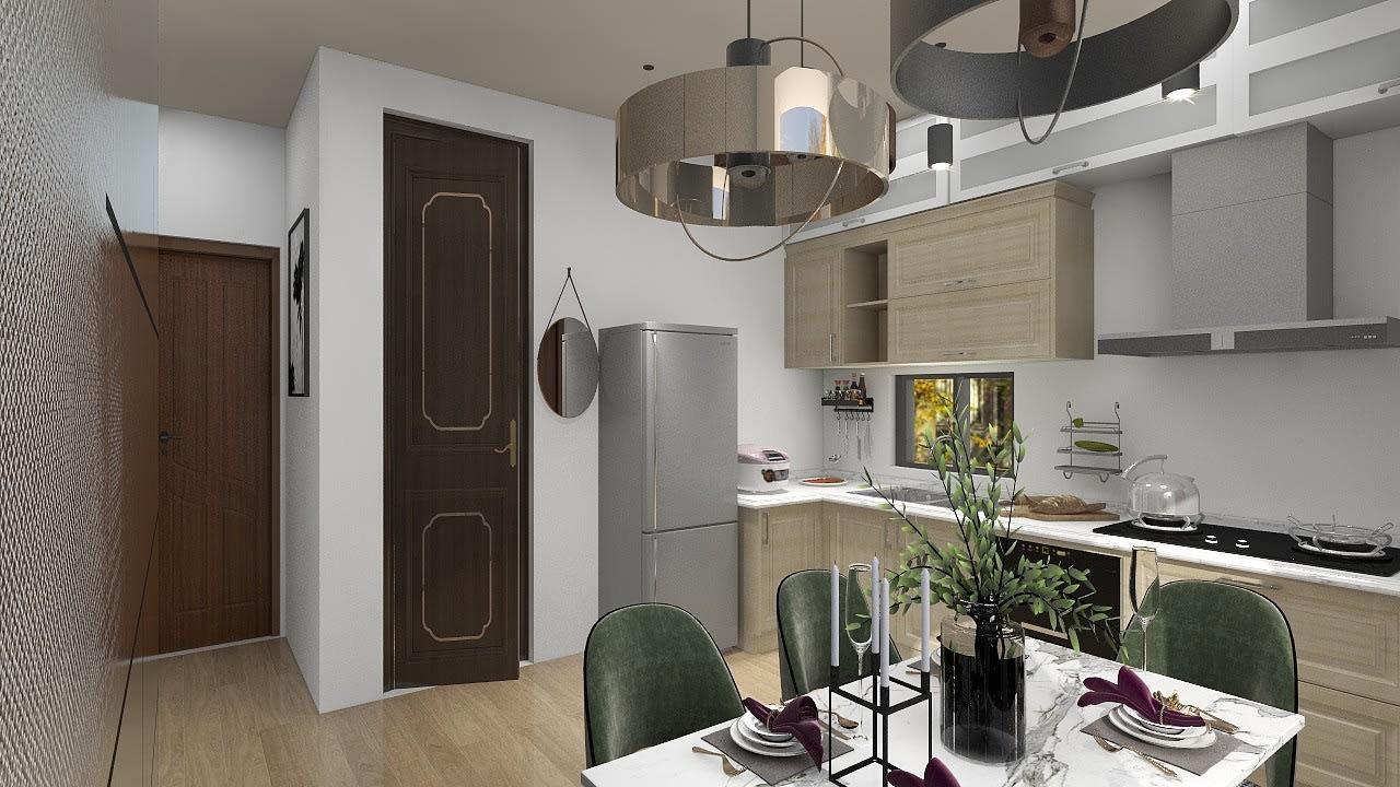 07. The color brown is the theme for the kitchen and with contrast in shades, it adds a contemporary feel. The white and green dining table gives an overwhelming feeling of nature especially with the wooden cabinets and doors and selecting different colors makes it less boring and more tempting and seductive.