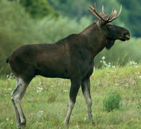 Älgen äter lövsly, tallskott, gräs och örter. De lever i små familjegrupper.