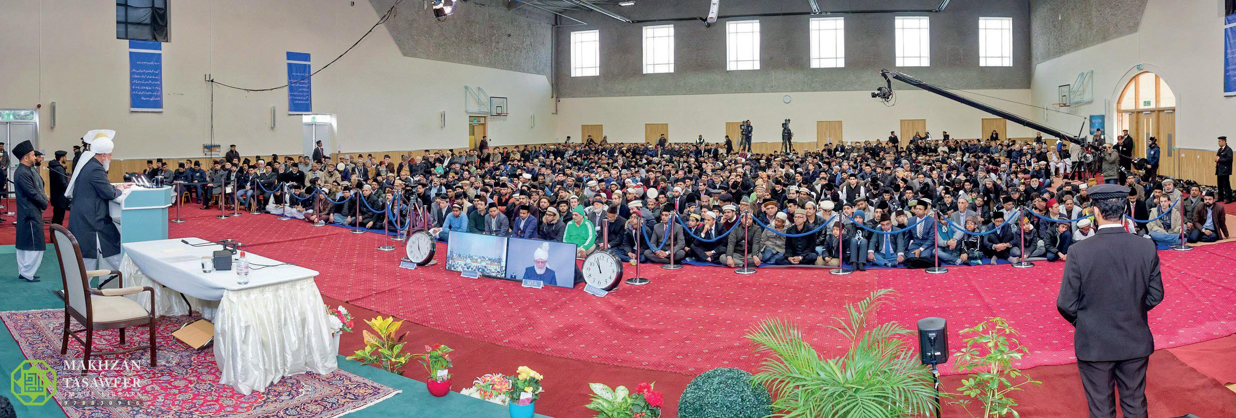 During his address, Huzooraa spoke of the objectives of the Jalsa Salana as prescribed by the Promised Messiahas. Huzooraa also mentioned mankind’s responsibilities towards God Almighty and towards one another.