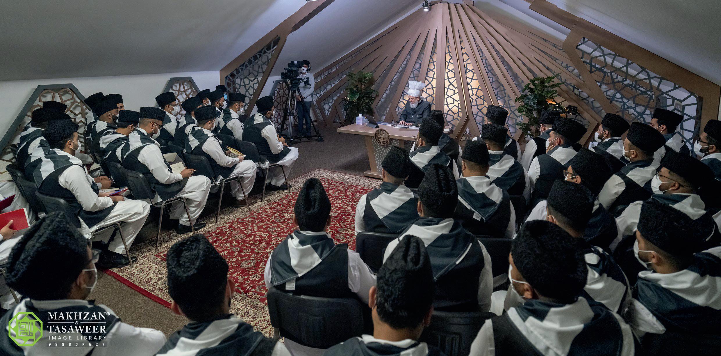 Speaking with Sultan Mubashar Sahib, Mohtamim Umumi, Huzooraa emphasised that khuddam should be performing duties to safeguard mosques. Khalid Hassan Sahib, Mohtamim Waqar-e-Amal, reported that Waqar-e-Amal sessions were held in mosques and prayer centres. Then, Hamid Basil Ahmad Sahib, Abdul Noor Abid Sahib, Ayaz Warraich Sahib, Sabahul Zafar Sahib, and Iftekhar Ahmad Sahib all reported that