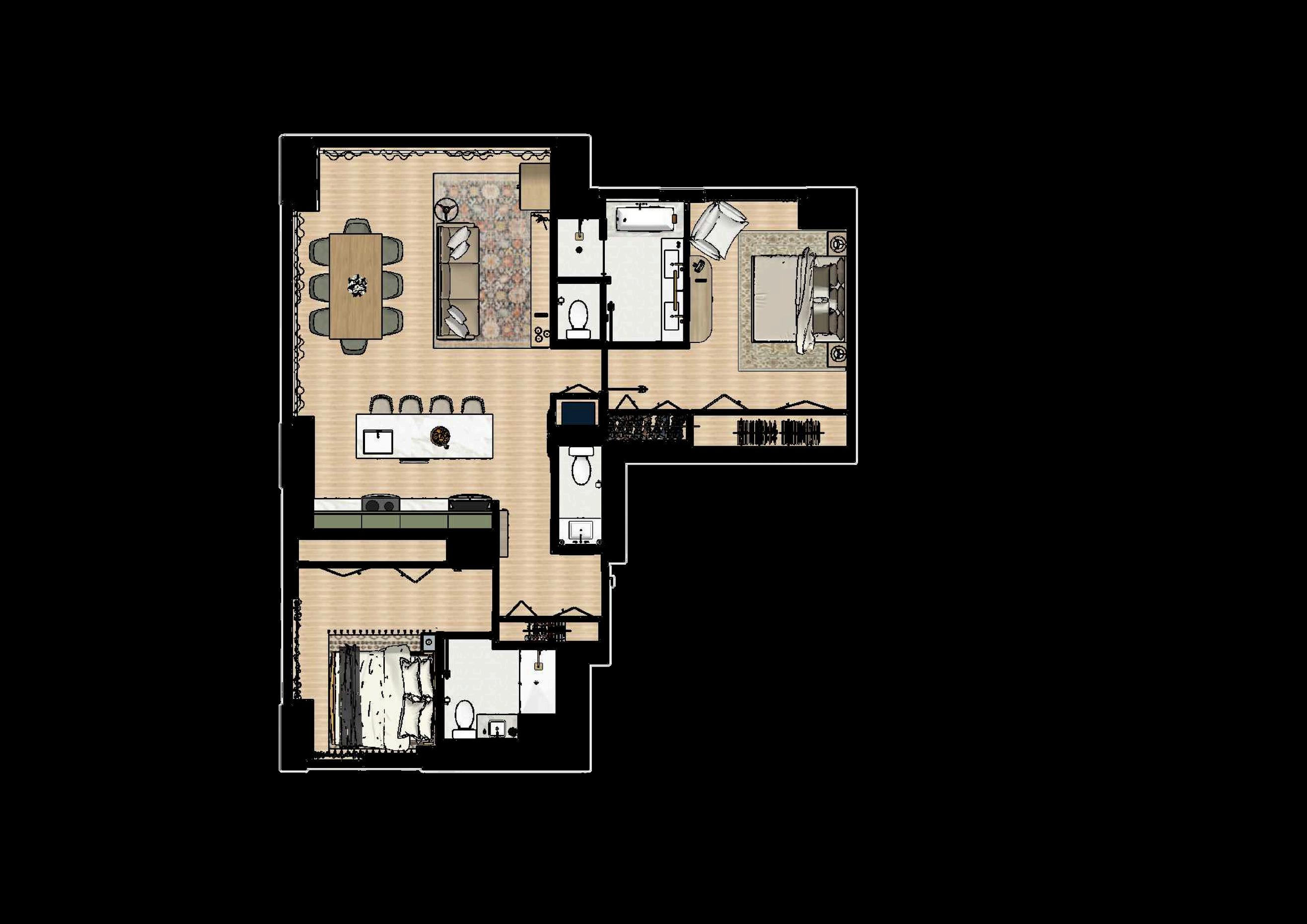 T h e h o t e l i s t h e a r e a w i t h t h e r e n d e r e d f l o o r i n g